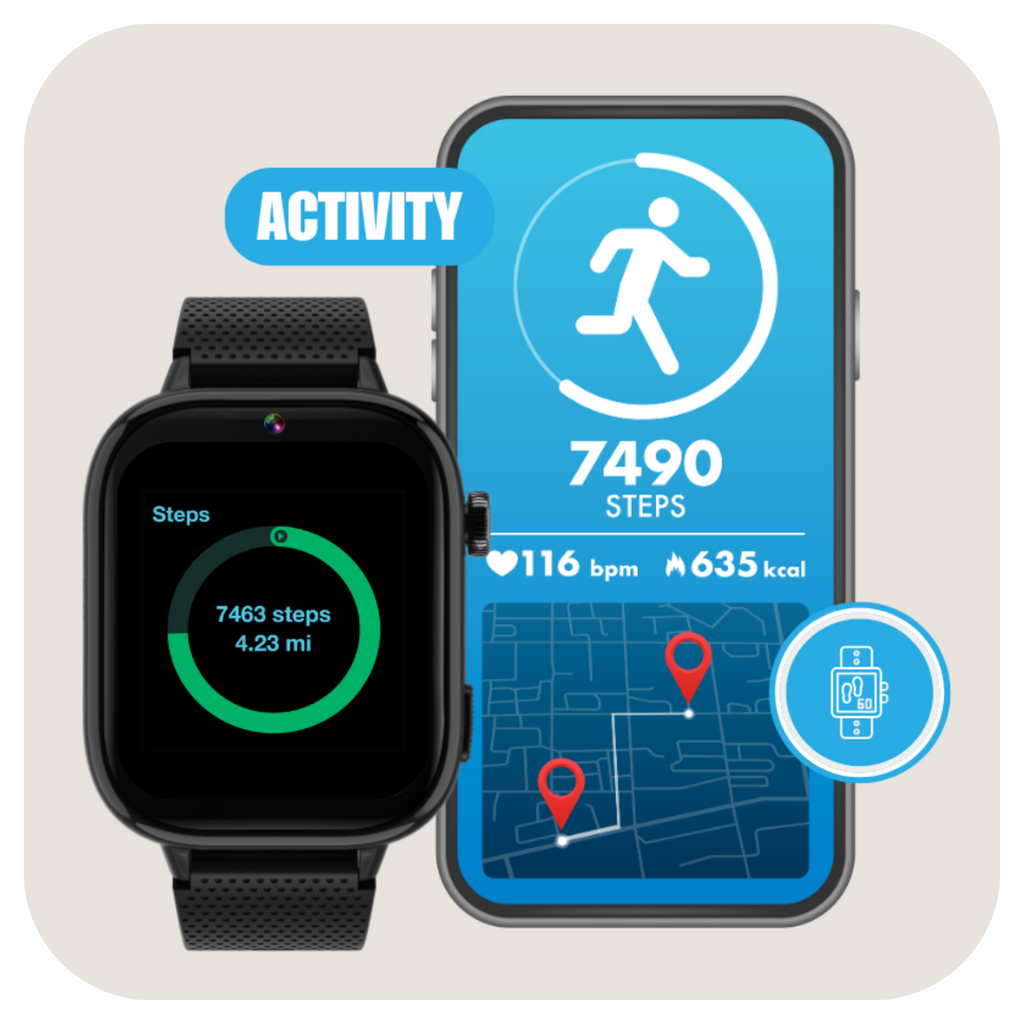 Your child can make and receive calls, send voice messages, track steps, play educational games, set alarms, and choose from fun watch faces — all while staying connected to you.